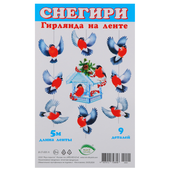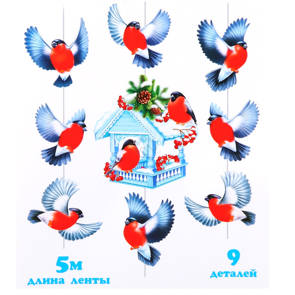 Открытка-гирлянда Снегири с кормушкой 500см Мир открыток 8-17-001А