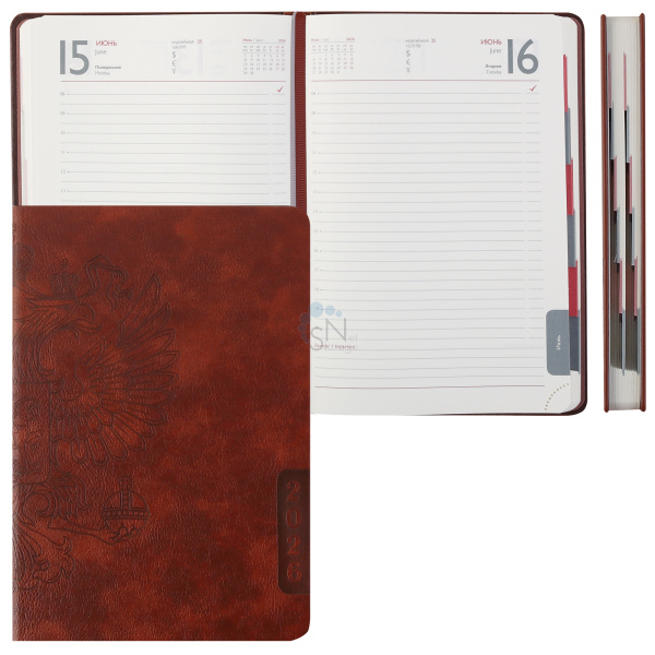 Ежедневник А5 дат 2026г тв обл 7Бц к/з 176л Escalada Наппа тонир 2ляссе тисн перф выруб 70246 коричневый