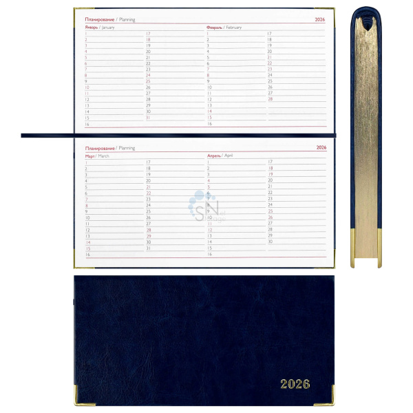Еженедельник (планинг) А6 дат 2026г интегр обл к/з 64л Escalada Сариф ляссе тисн фольг зол срез 70386 синий